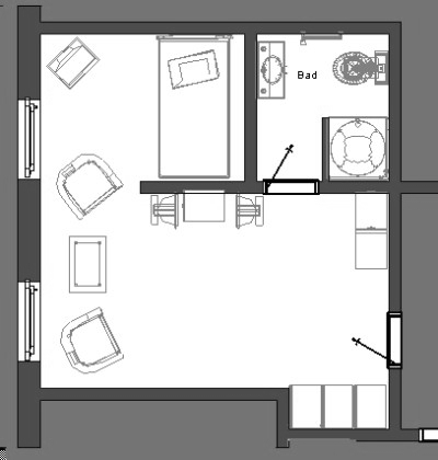 1 Zimmer Wohnung ca. 32 m² Bett 140 x 200 cm