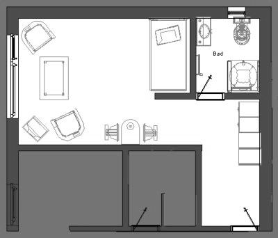 1 Zimmer Wohnung ca. 27 m² 1 Schlafgelegenheit
